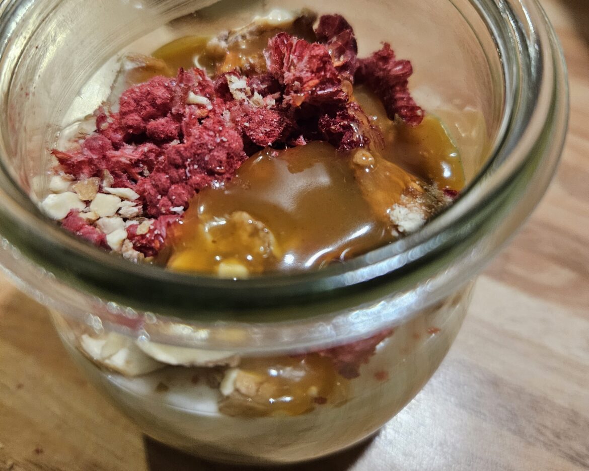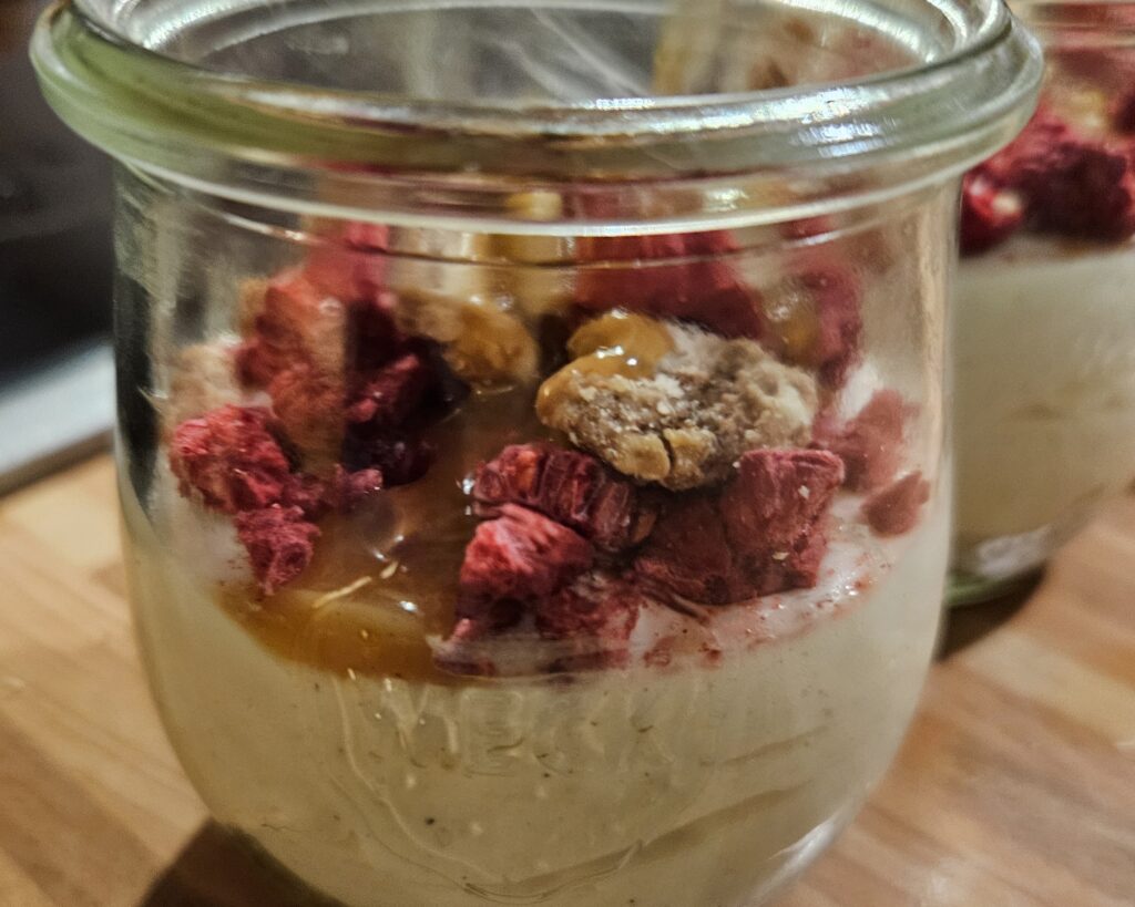 Das vegane Dessert mit dem gewissen Etwas. Dass es vegan ist, habe ich meinen Gästen nicht verraten – „oberlecker“ war das Credo;-)