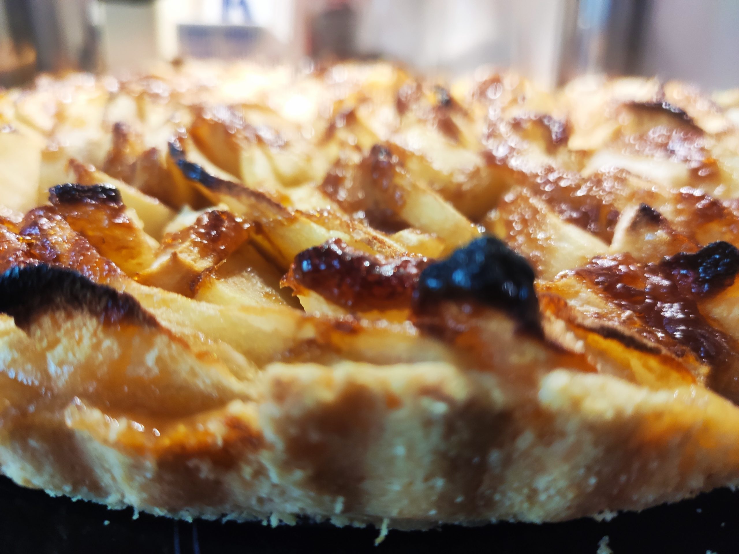 Ca. 25 min. auf der untersten Schiene backen, aber im Auge behalten. Ggf. zwischendrin ein Mal kurz den Ofen öffnen, um die Feuchtigkeit von den Äpfeln rauszulassen. Falls der Kuchen von oben zu dunkel wird, für die restliche Backzeit vorsichtig mit Alufolie abdecken.